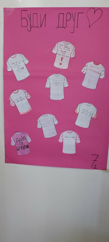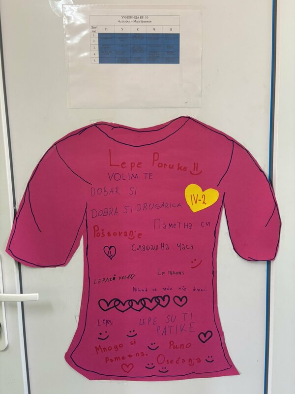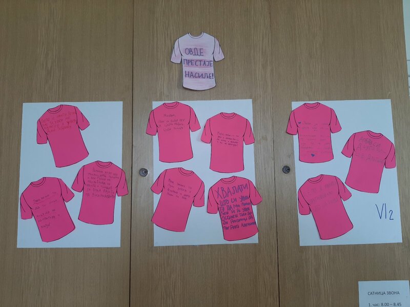 ученици су на розе мајицама исписивали поруке добрих намера и пријатељства својим